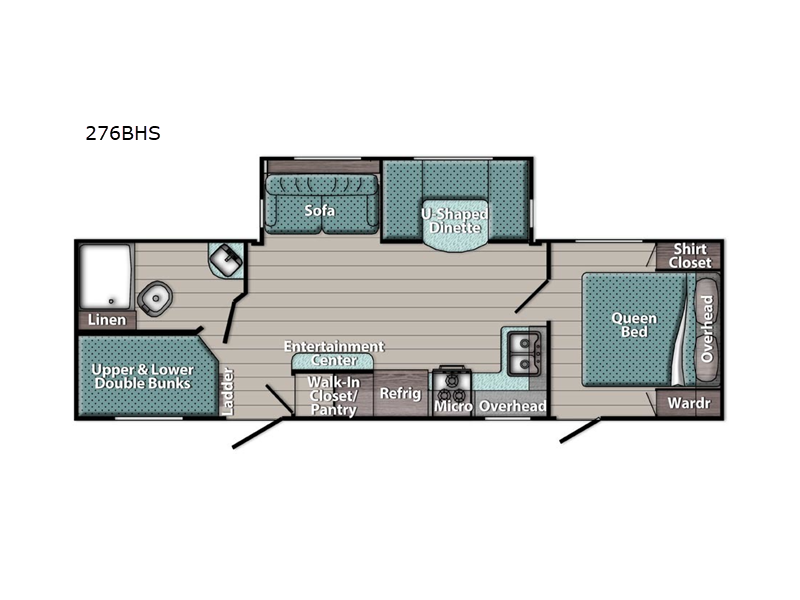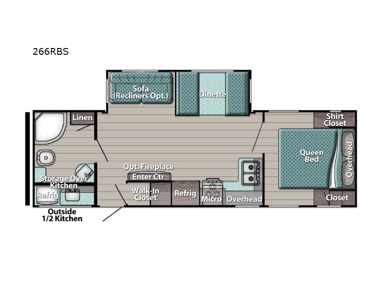 Sleeps 4 Slides 1 Length 30 ft 5 in Ext Width 8 ft Ext Height 11 ft 3 in Int Height 6 ft 8 in Hitch Weight 650 lbs Dry Weight 6290 lbs Cargo Capacity 3160 lbs Fresh Water Capacity 35 gals Grey Water Capacity 67 gals Black Water Capacity 33 gals Furnace BTU 25000 btu Available Beds Queen Refrigerator Type 12V Refrigerator Size 10.7 cu ft Cooktop Burners 3 Number of Awnings 1 LP Tank Capacity 20 lbs Water Heater Type Tankless AC BTU 13500 btu Awning Info Electric with LED Lights Axle Count 2 Number of LP Tanks 2 Shower Type Radius Electrical Service 30 amp Similar Floorplans