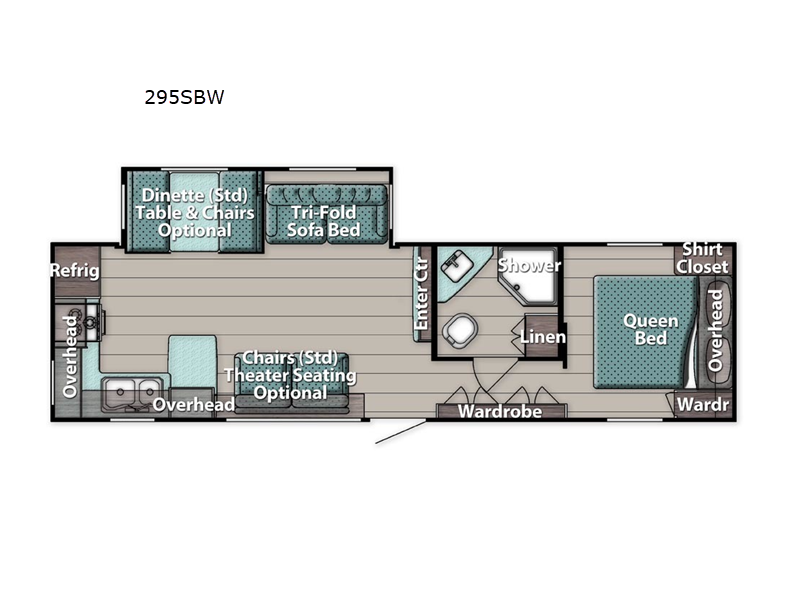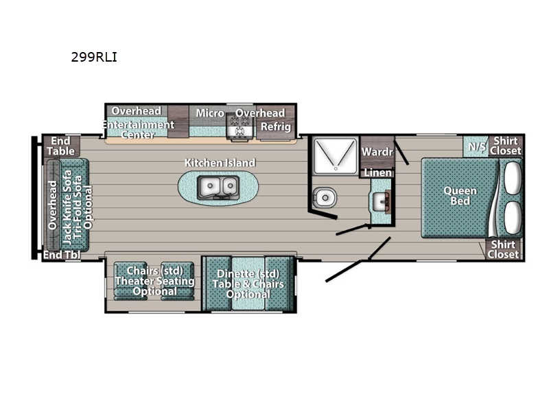 - Power Slide Out or Double Slide Out (see floor plans for specifics)