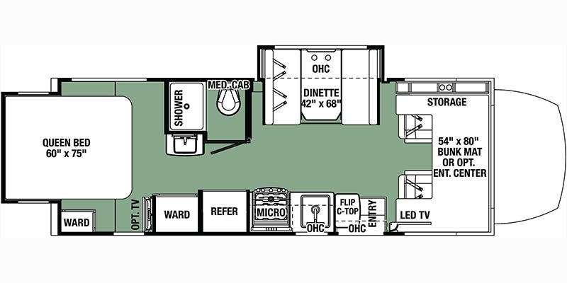 - Cab over folding twin beds with 32" 12V TV (IPO side TV) (N/A GTS, MBS)